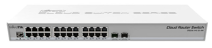 Cloud Router Switch 326-24G-2S+RM with RouterOS L5, 1U rackmount enclosureSwOS/RouterOS powered 24 port Gigabit Ethernet switch with two SFP+ ports, wire speed connectivity with several new switching features! It has “Dual boot” feature that allows you to choose which operating system you prefer to use, RouterOS or SwOS. If you prefer a simplified smartswitch with only switch specific features, use SwOS. If you are used to routers and Winbox and would like the ability to use routing and other Layer 3 features on some ports in your CRS, boot and use RouterOS. | ![]() |
